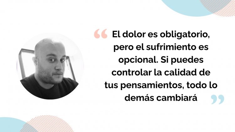 “La noche, justo cuando se va a hacer de día, es cuando es más oscura. El dolor es obligatorio, pero el sufrimiento es opcional. Uno sufre porque «quiere sufrir». Si puedes controlar la calidad de tus pensamientos, todo lo demás cambiará. No sirve de nada fustigarse. Si cambias la fustigación por «soy el mejor» y te hablas bien, te das cariño, te das amor y tomas conciencia de lo que te pasa, todo cambiará. Lo que necesitas es liberarte de tus pensamientos, que son tu peor enemigo. Ya lo dicen: «la mayor victoria en la vida está en vencerse a uno mismo»”.