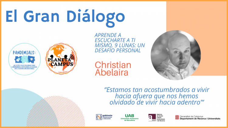 El Gabinete de Comunicación y Educación de la Universitat Autònoma de Barcelona organizó la decimocuarta sesión del ciclo “El Gran Diálogo”, titulada “Aprende a escucharte a ti mismo. 9 lunas: un desafío personal”. La jornada, que tuvo lugar el pasado viernes 11 de julio de 2025, fue protagonizada por el emprendedor y motivador Christian Abelaira y moderada por el catedrático Santiago Tejedor.