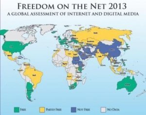 Libertad en la Red 2013 identifica las tendencias clave en la libertad de Internet en 60 países, evalúa cada país sobre la base de los obstáculos al acceso, los límites en el contenido, y violaciones de los derechos de usuario.