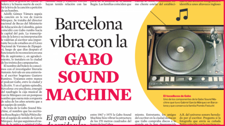 La crónica, titulada “Cuando Barcelona vibraba con la Gabo Sound Machine”, narra la influencia musical en la creación literaria del nobel colombiano. El periodista Juan David Escorcia, docente del Máster en Periodismo de Viajes de la UAB, describe esta afición del escritor y sitúa el equipo de sonido en la Barcelona de los años setenta, cuando García Márquez adquirió un potente aparato musical que instala en su residencia. “Suena no menos de dos horas diarias”, sentenció García Márquez en una entrevista que recupera el periodista en su crónica.
