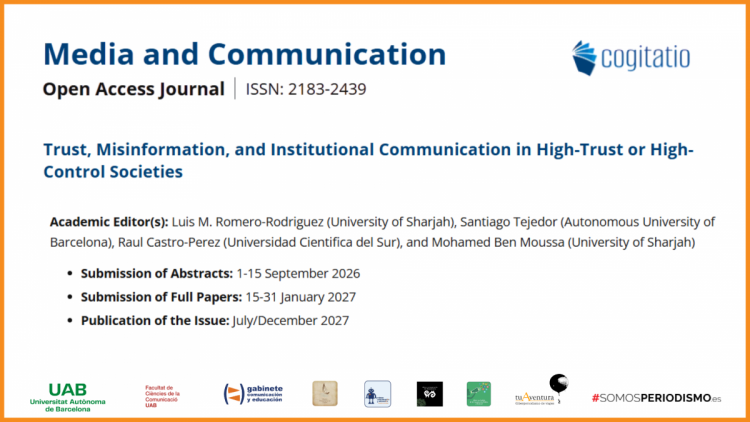 La revista académica Media and Communication, editada por Cogitatio Press, ha lanzado una nueva convocatoria internacional para un número monográfico titulado “Trust, Misinformation, and Institutional Communication in High-Trust or High-Control Societies”, que analizará las dinámicas entre confianza pública, desinformación y comunicación institucional en diferentes contextos políticos y mediáticos.