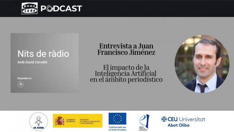 El periodista Juan Francisco Jiménez, secretario del Centre d’Innovació Tecnològica i Intel·ligència Artificial de la Universitat CEU Abat Oliba e investigador del proyecto IA-COM, fue entrevistado el pasado miércoles 25 de marzo de 2026 en el programa de radio Nits de Ràdio, de Onda Cero. El espacio, conducido por David Cervelló, permitió analizar el impacto de la Inteligencia Artificial en el sector periodístico.