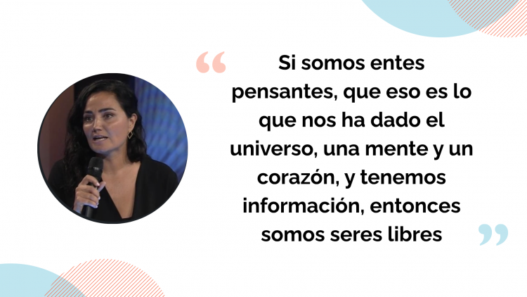 “¿La ignorancia nos hace más felices? Es una pregunta filosófica que han respondido muchísimos a lo largo de la historia. Yo he llegado a un momento maduro de salud mental en mi vida, en el que llego a esta conclusión: yo prefiero saber muchas cosas, porque esa sabiduría ahora me hará actuar o me hará decidir cosas. Ya lo dicen: la información es poder. Yo estoy convencida de que cuanta más información tengamos, más libres seremos. Por eso hago la profesión que hago. Cuanta más información doy a la gente, más libre es de tomar decisiones, más libre es a la hora de votar, más libre es a la hora de decidir su propia vida. Si somos entes pensantes, que eso es lo que nos ha dado el universo, una mente y un corazón, y tenemos información, entonces somos seres libres”.
