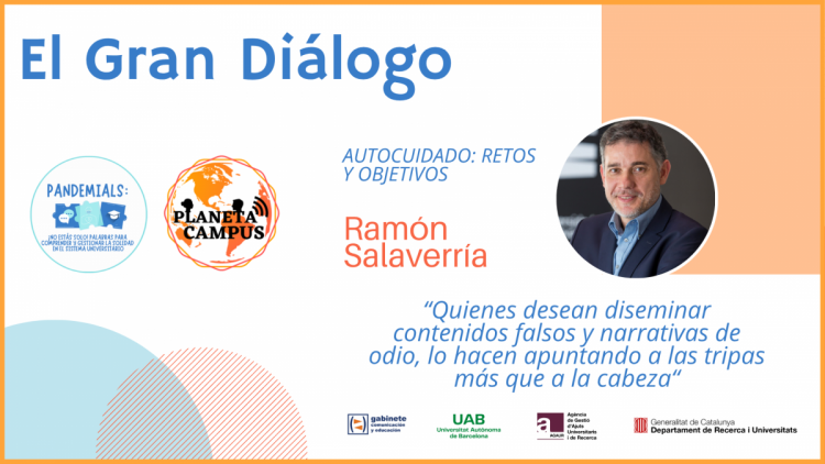 El Gabinete de Comunicación y Educación de la Universitat Autònoma de Barcelona organizó la decimoquinta sesión del ciclo “El Gran Diálogo”, titulada “Autocuidado: retos y objetivos”. La jornada, que tuvo lugar el pasado martes 7 de octubre de 2025, fue protagonizada por el catedrático de periodismo Ramón Salaverría y moderada por el catedrático Santiago Tejedor.